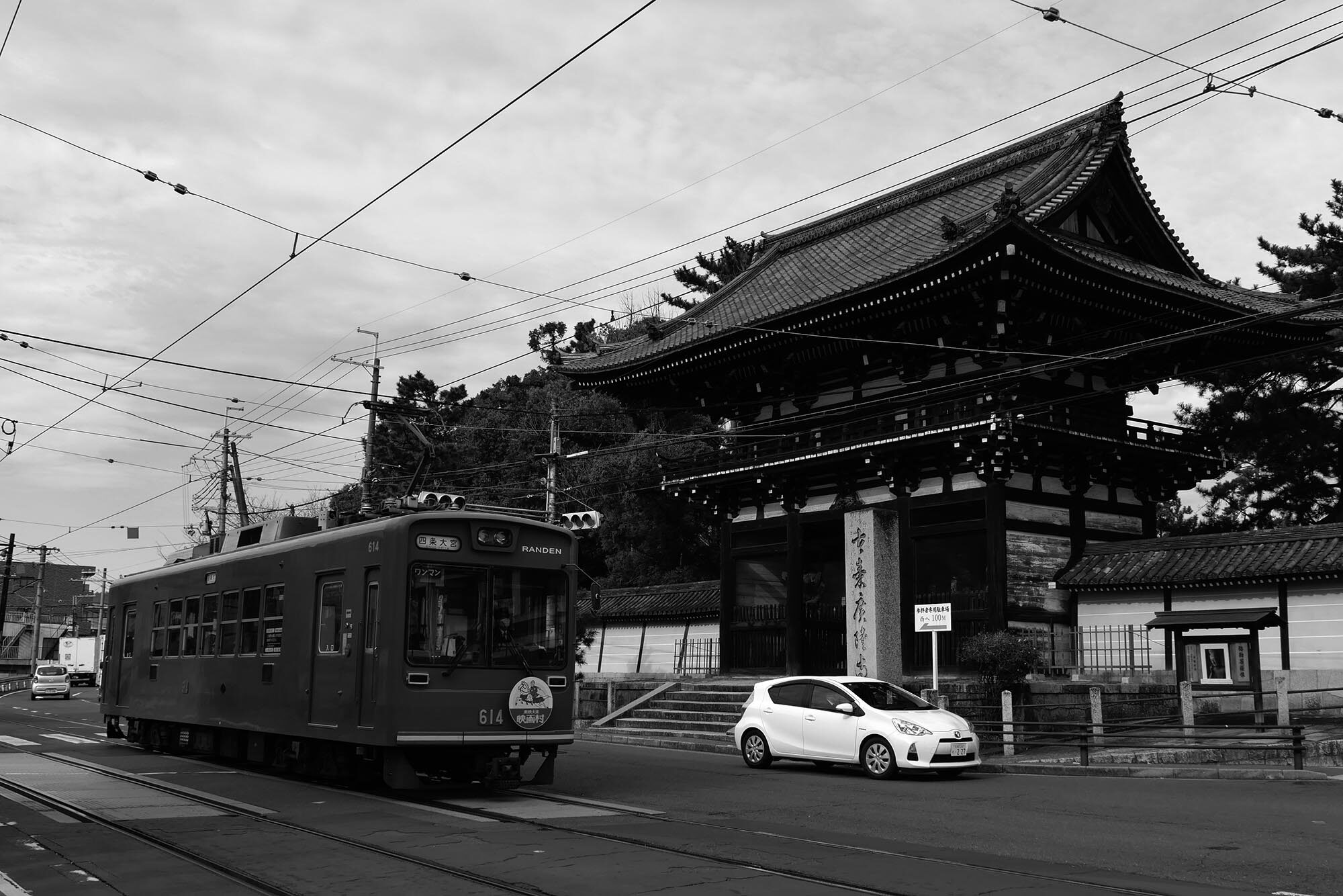 노면전차가 지나가는 고류지 정문과 경내는 관광객이 별로 없어 호젓한 산책을 즐길 수 있으며 이 곳에는 일본 국보1호 목조미륵보살반가상을 눈앞에서 감상할 수 있다./japannow